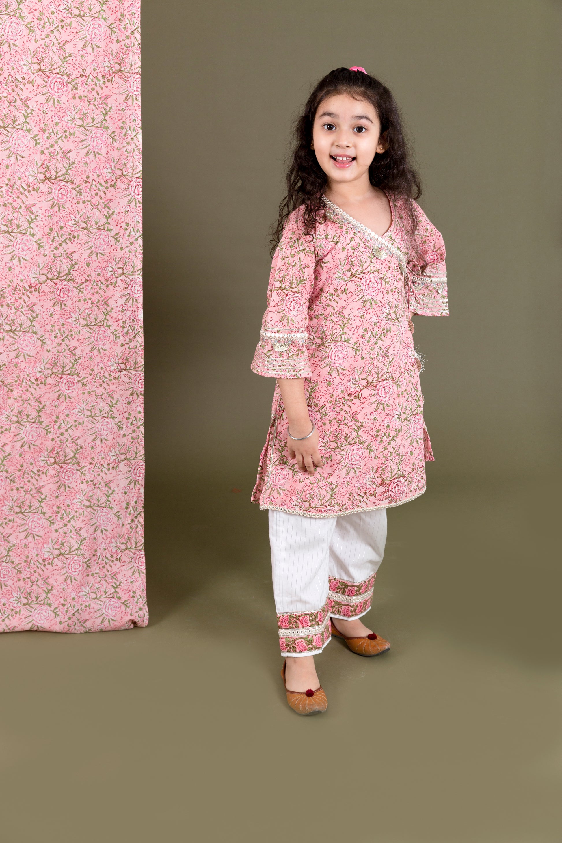 Angrakha cotton kurta with three fourth sleeves