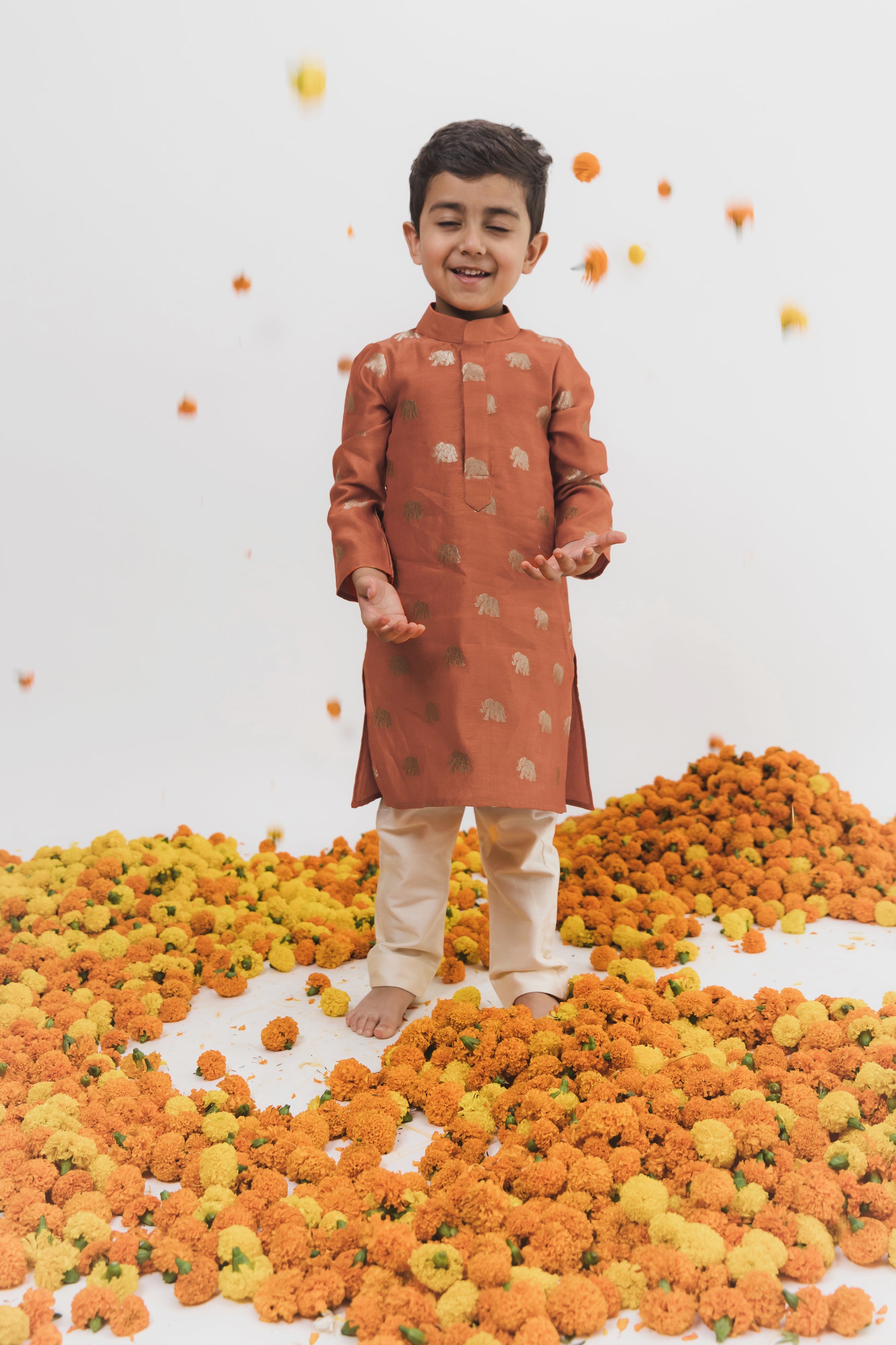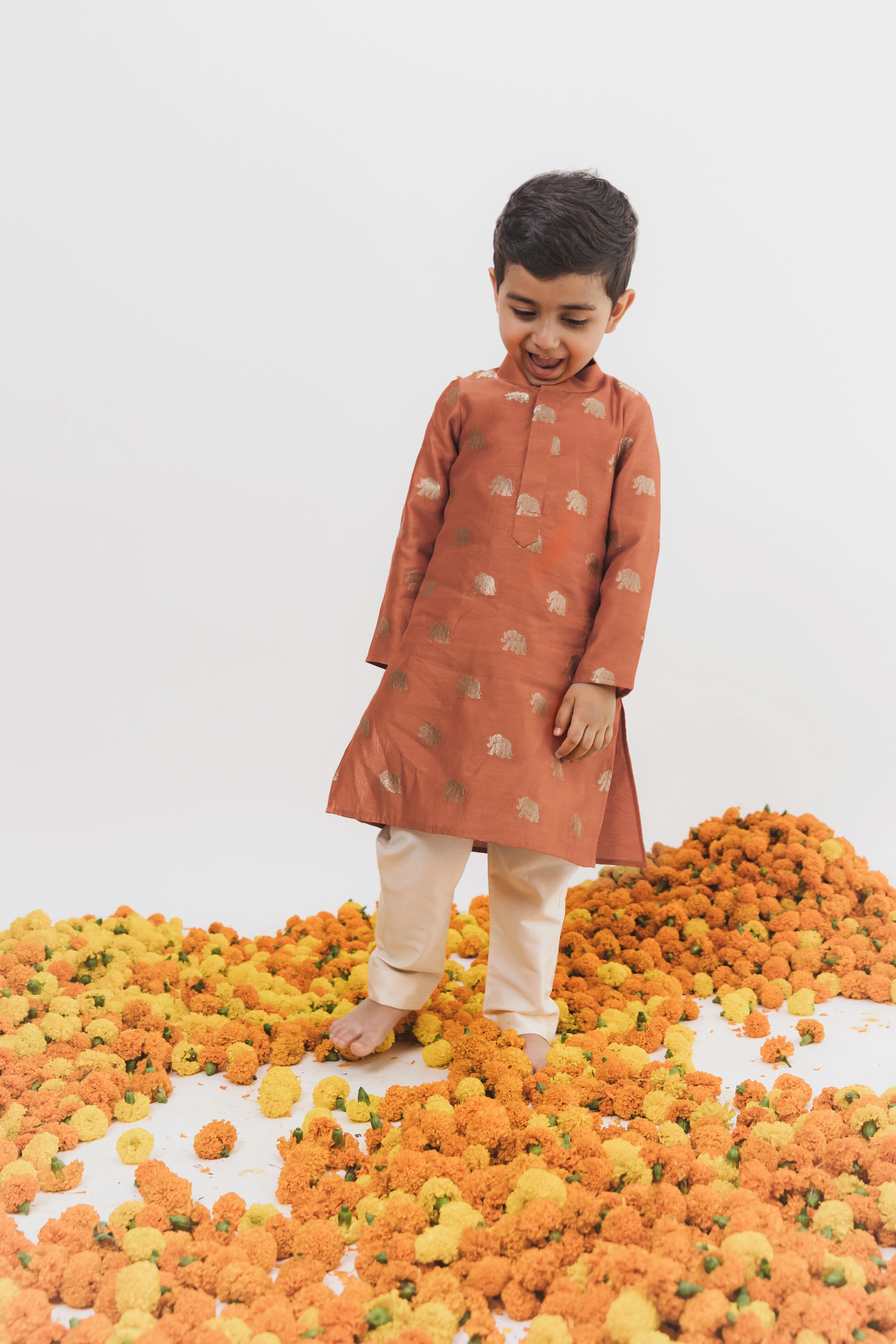 Orange kurta and off whitepants