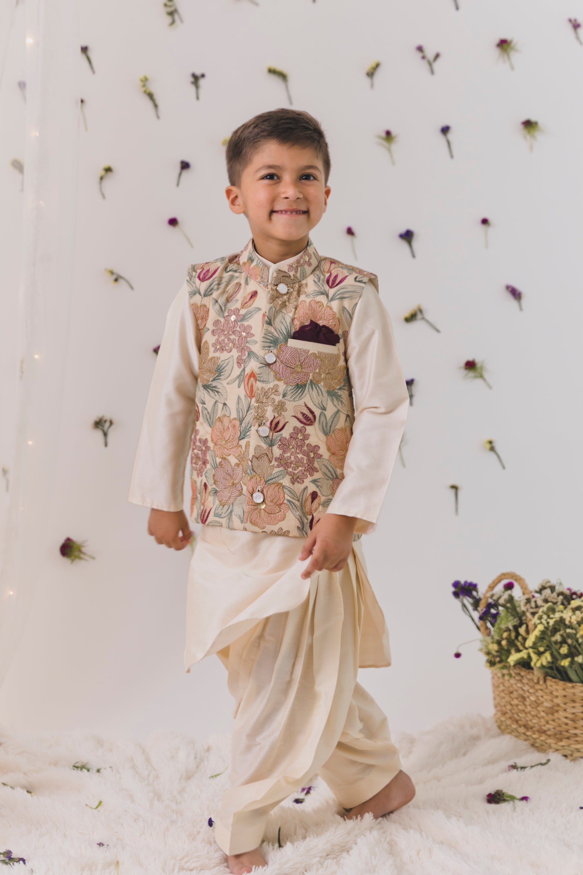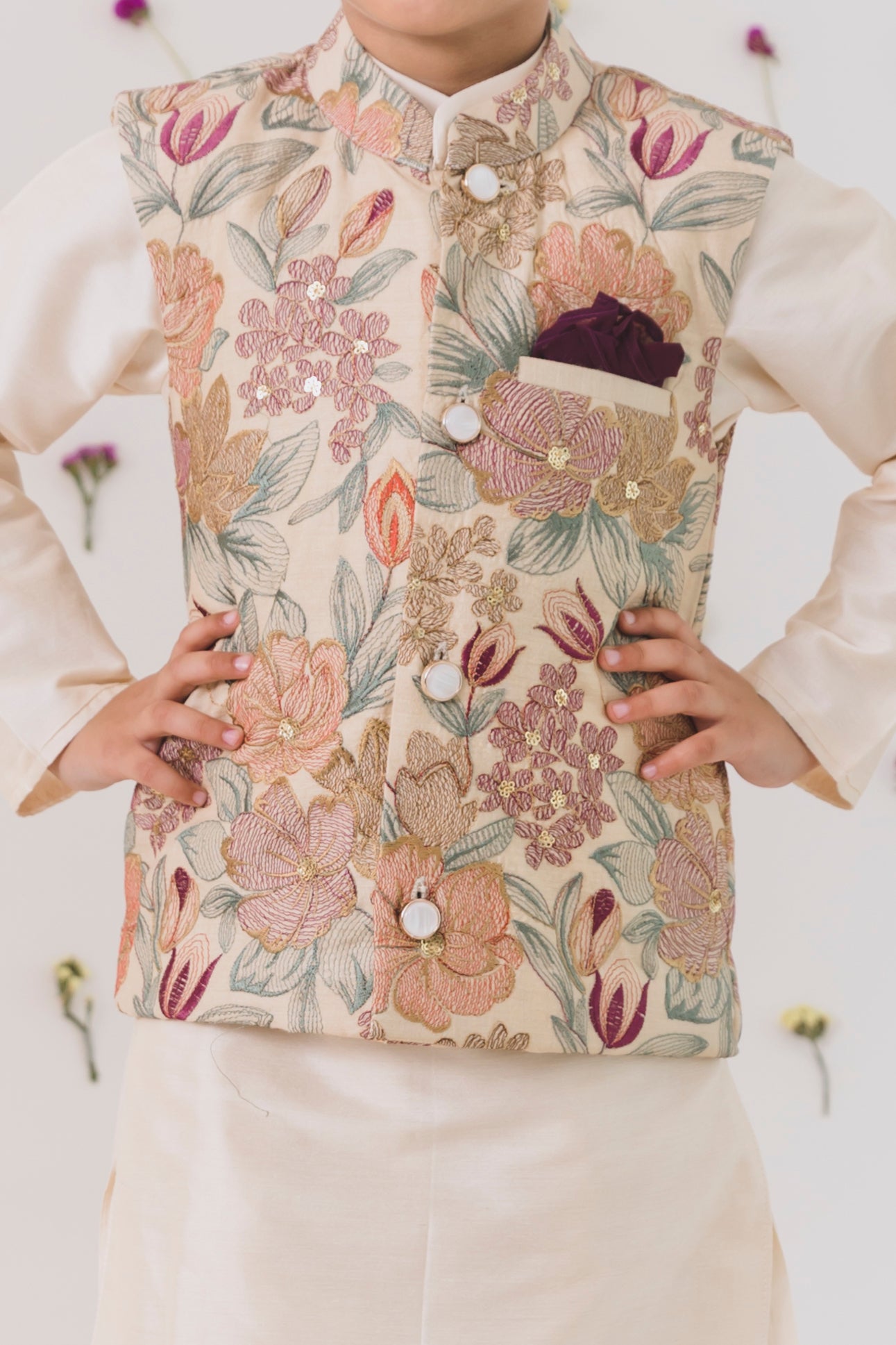 Beige pathani with multicolor bundi