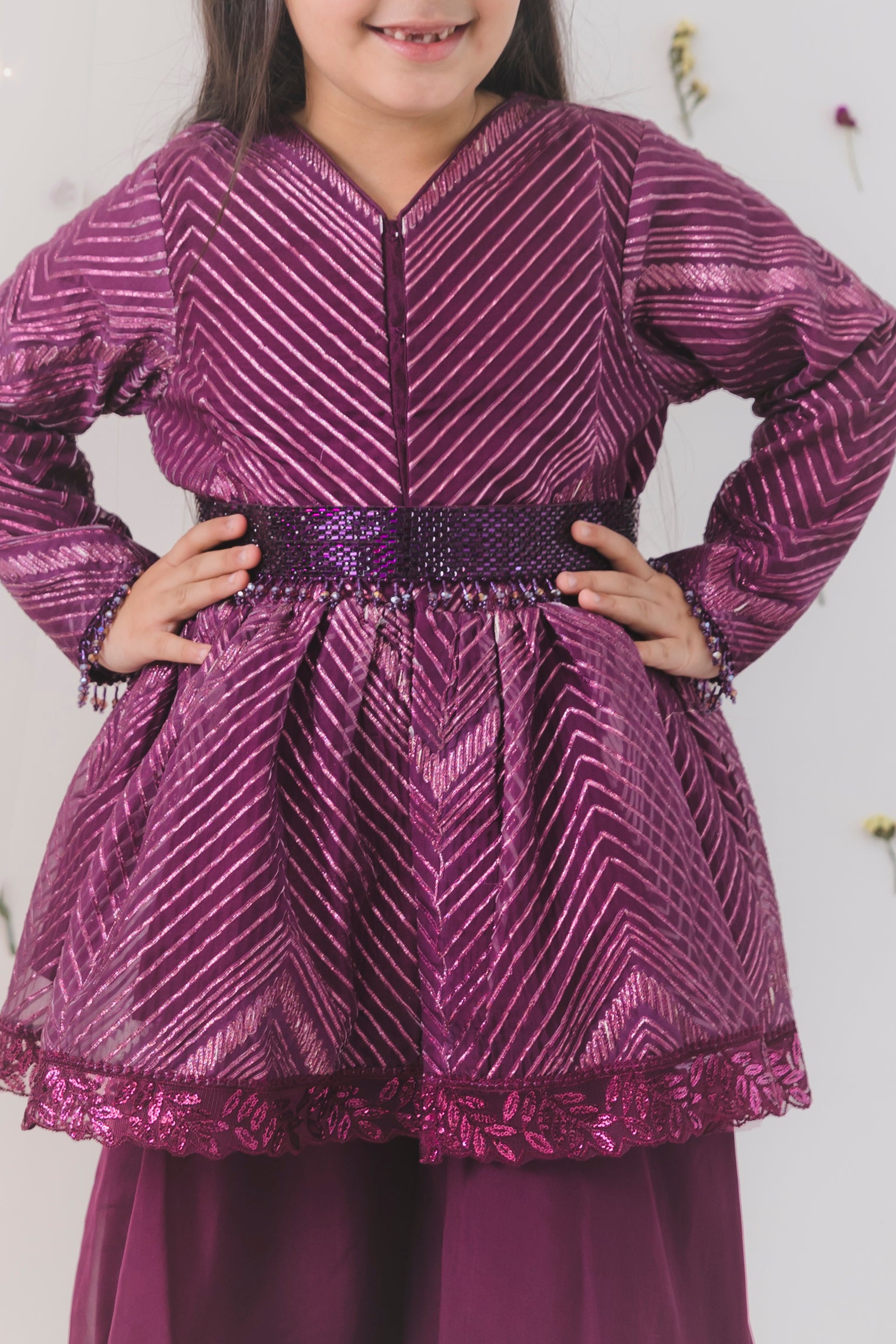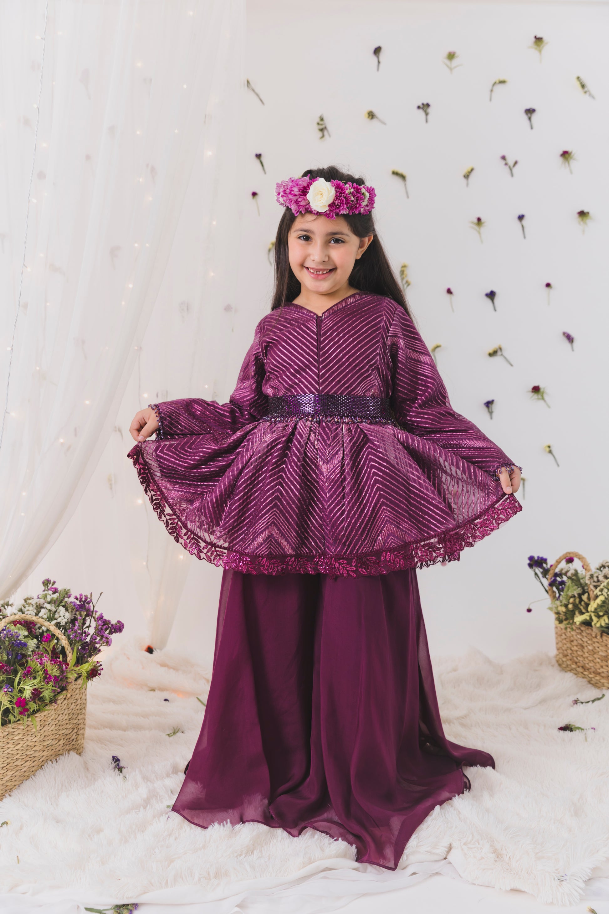 Wine peplum top plazzo set