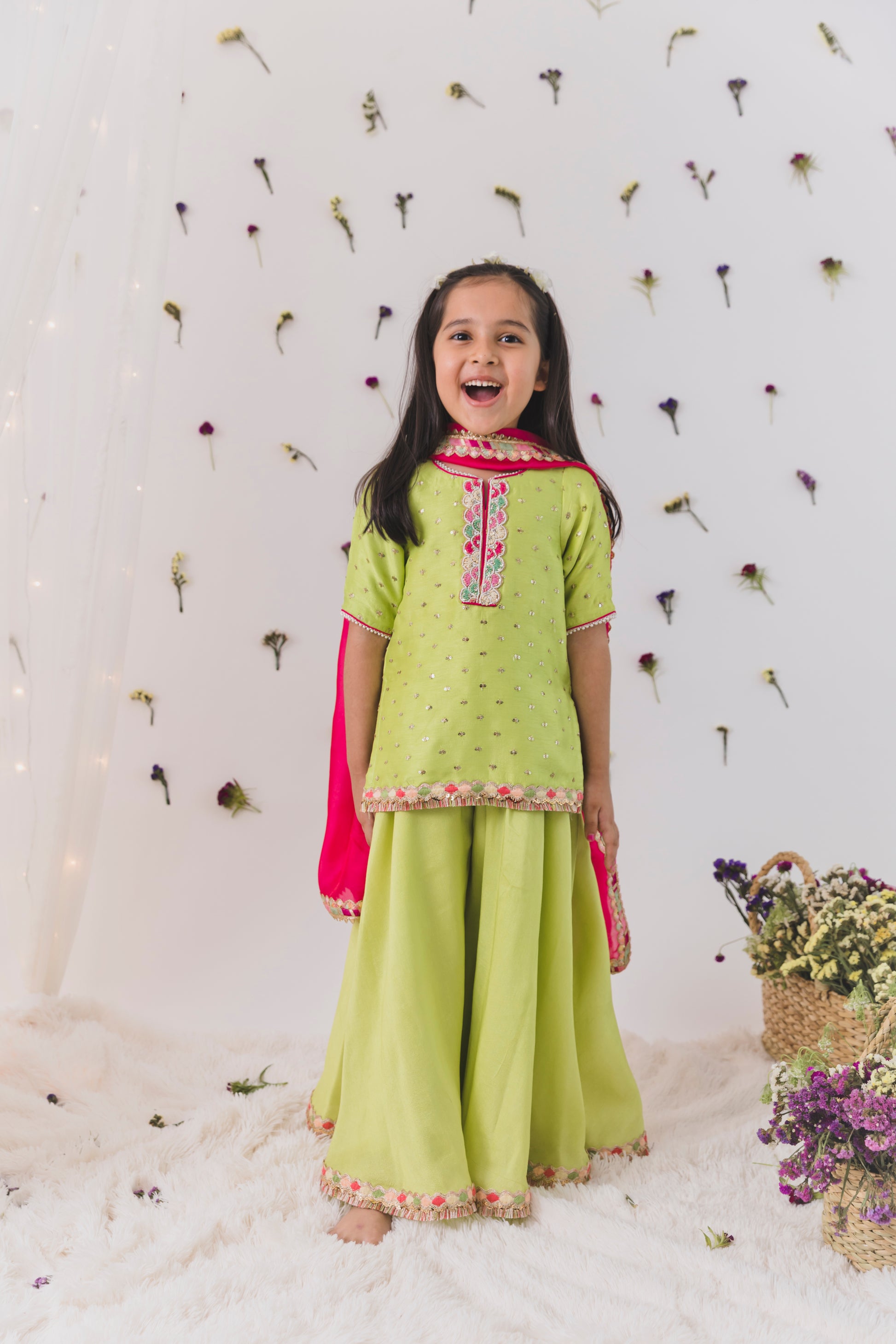 Parrot green top with sharara