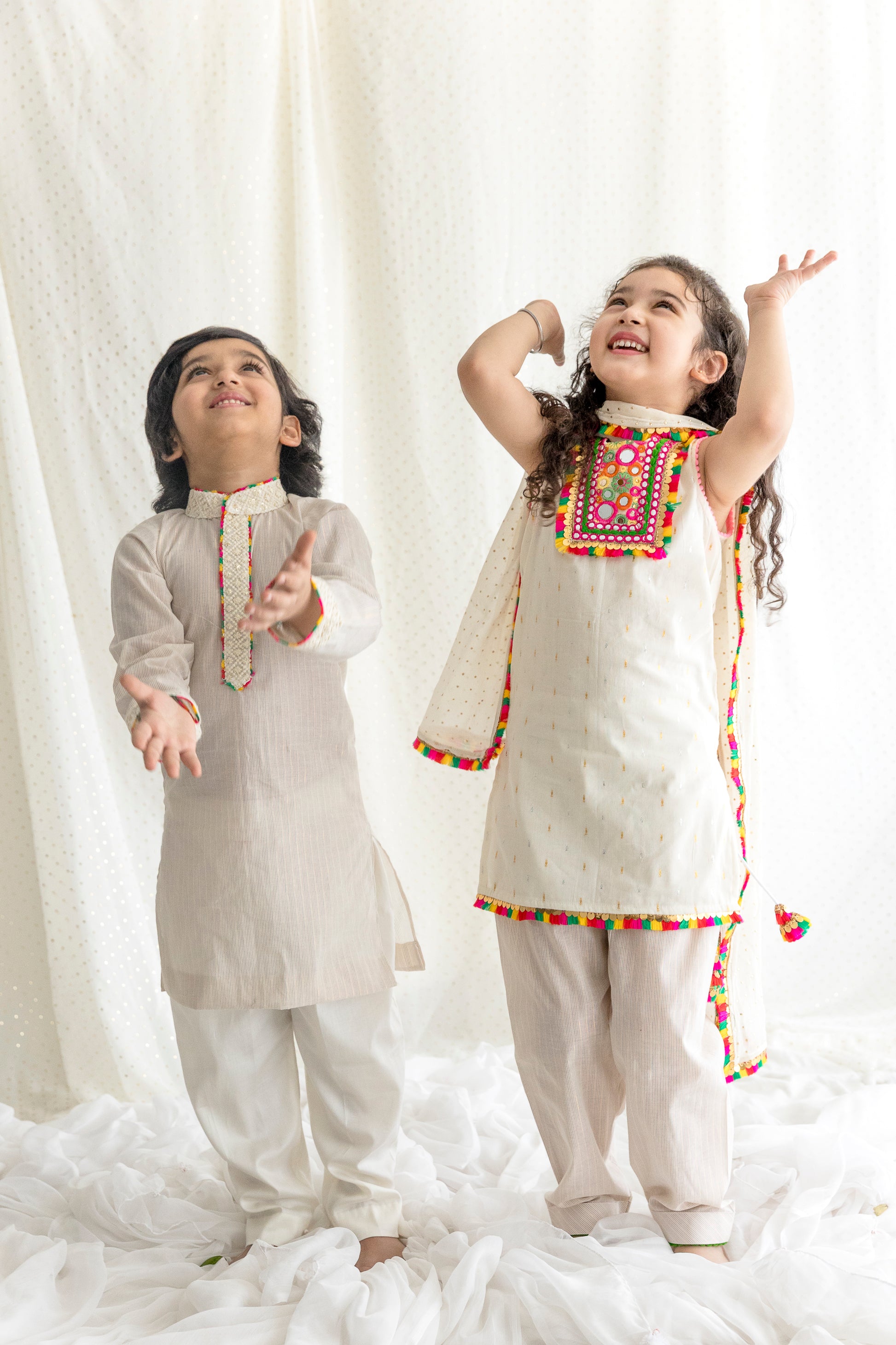 Cotton lurex kurta with multicolor detailing on neck and sleeves
