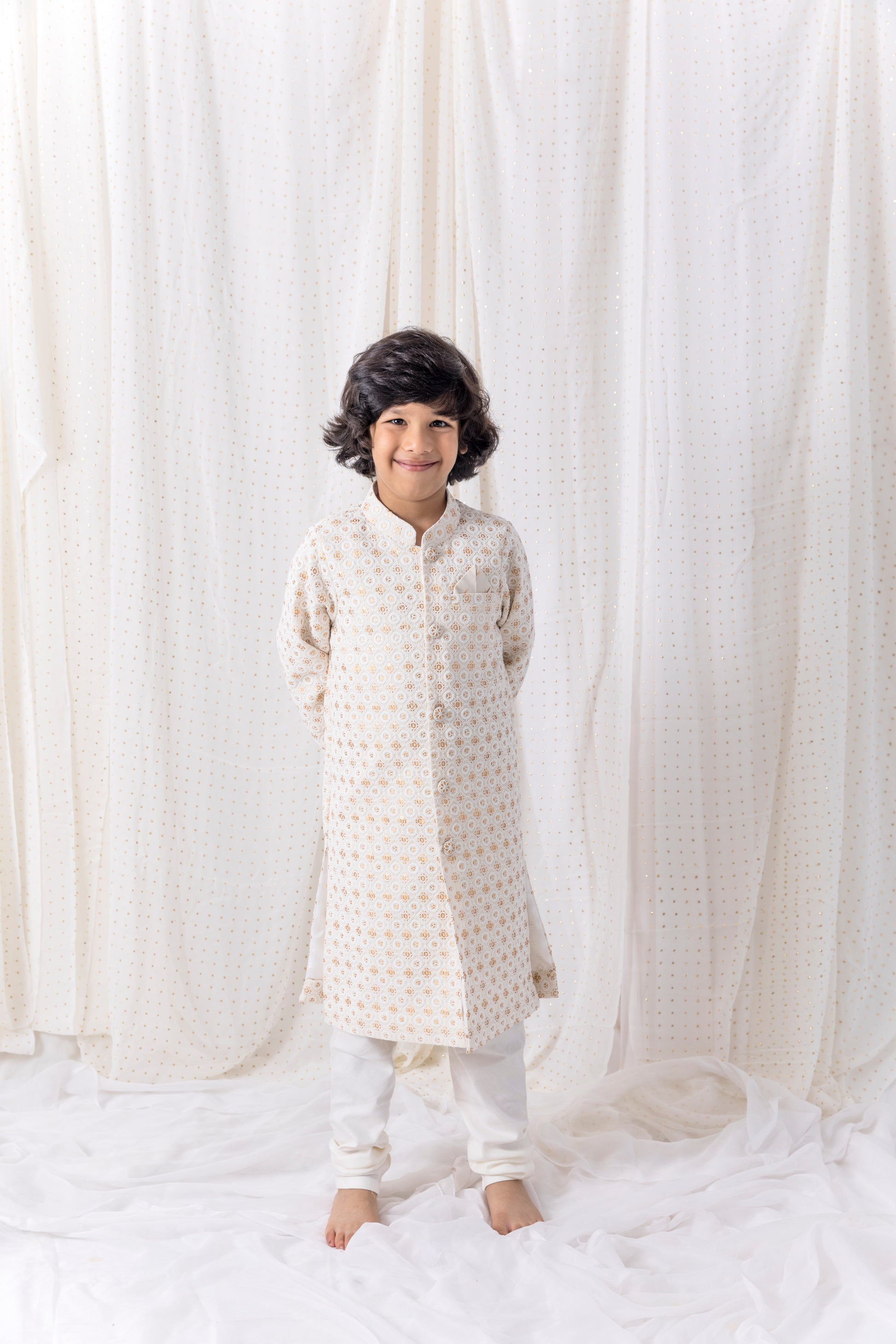 • Sequin embelished embroided sherwani.